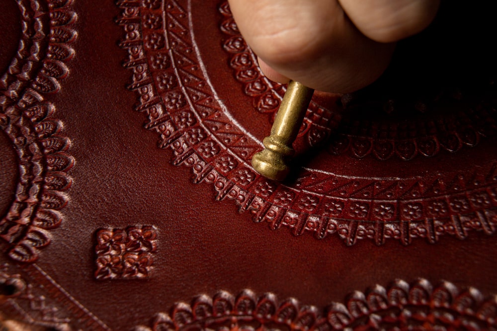 مهم ترین و اصلی ترین ابزار همان چرم است که باید در انتخاب آن دقت کنید. برای دستیابی به بهترین نتیجه، بهتر است چرمی با کیفیت بالا، نرم و انعطافپذیر انتخاب شود. چرمهای طبیعی مانند پوست بز و گاو به دلیل دوام و قابلیت شکلپذیری بالا، گزینههای مناسبی هستند. در عین حال، بهتر است از چرمهای بسیار ضخیم یا سفت خودداری شود، چرا که این نوع چرمها ممکن است در طرحهای پیچیده مشکلساز شوند. همچنین، چرمهای بسیار ظریف نیز به دلیل احتمال پاره شدن یا تغییر شکل، انتخاب مناسبی نیستند.